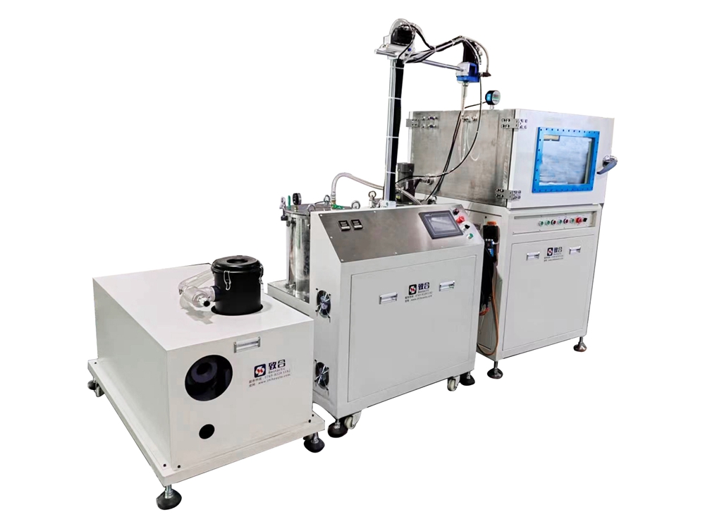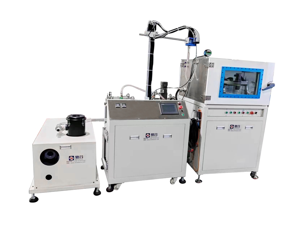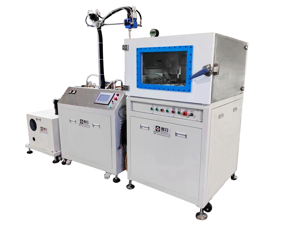 一些电子类产品,质量要求很高,灌胶时不能出现气泡,但普通的灌胶设备只能实现胶水抽真空灌胶,不能在产品灌胶工艺端实现真空的灌胶环境;智能流体控制自动化厂家针对此工艺端研发了一款可以在真空环境下灌胶的智能设备;像中汇翰骑的真空灌胶设备在原有设备&工艺上升级改造,可实现灌胶产品0气泡、真空状态下无滴胶及漏胶现象、可针对复杂结构的产品灌胶,设计上增加了在线式轨道,自动化程度极高,适用于5:1~1:1的双组份胶水灌封(也可根据客户工艺定制化)。